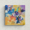 Fragrance evokes a flower in full bloom. Yellows, oranges, blues and purples blend together in a vibrant composition. The overall effect suggests a delicate yet intense fragrance.