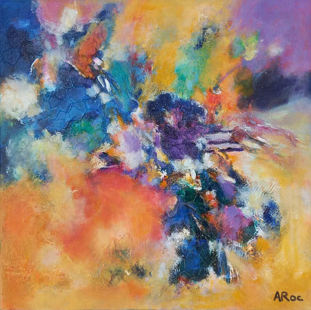 This abstract painting conveys a sensation rather than a narrative: an emotional and sensory experience that is both warm and mysterious.