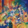 Cette toile questionne notre société submergée par les flux de données et la surcharge d’informations.