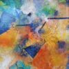 Data Vortex évoque un tourbillon abstrait où couleurs et matières sont entraînées dans un mouvement continu.